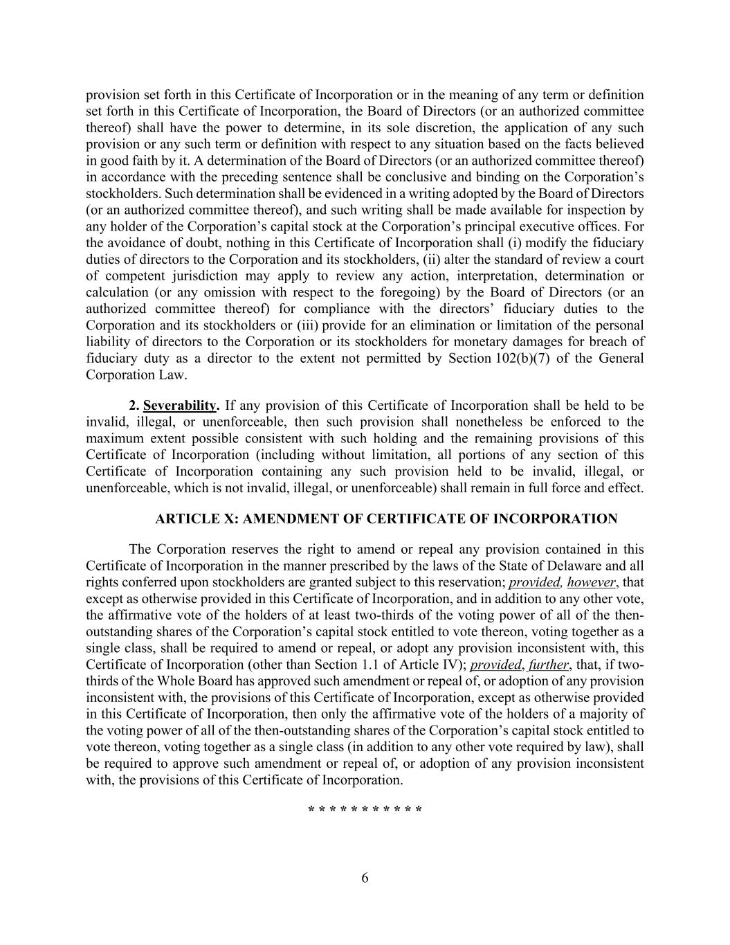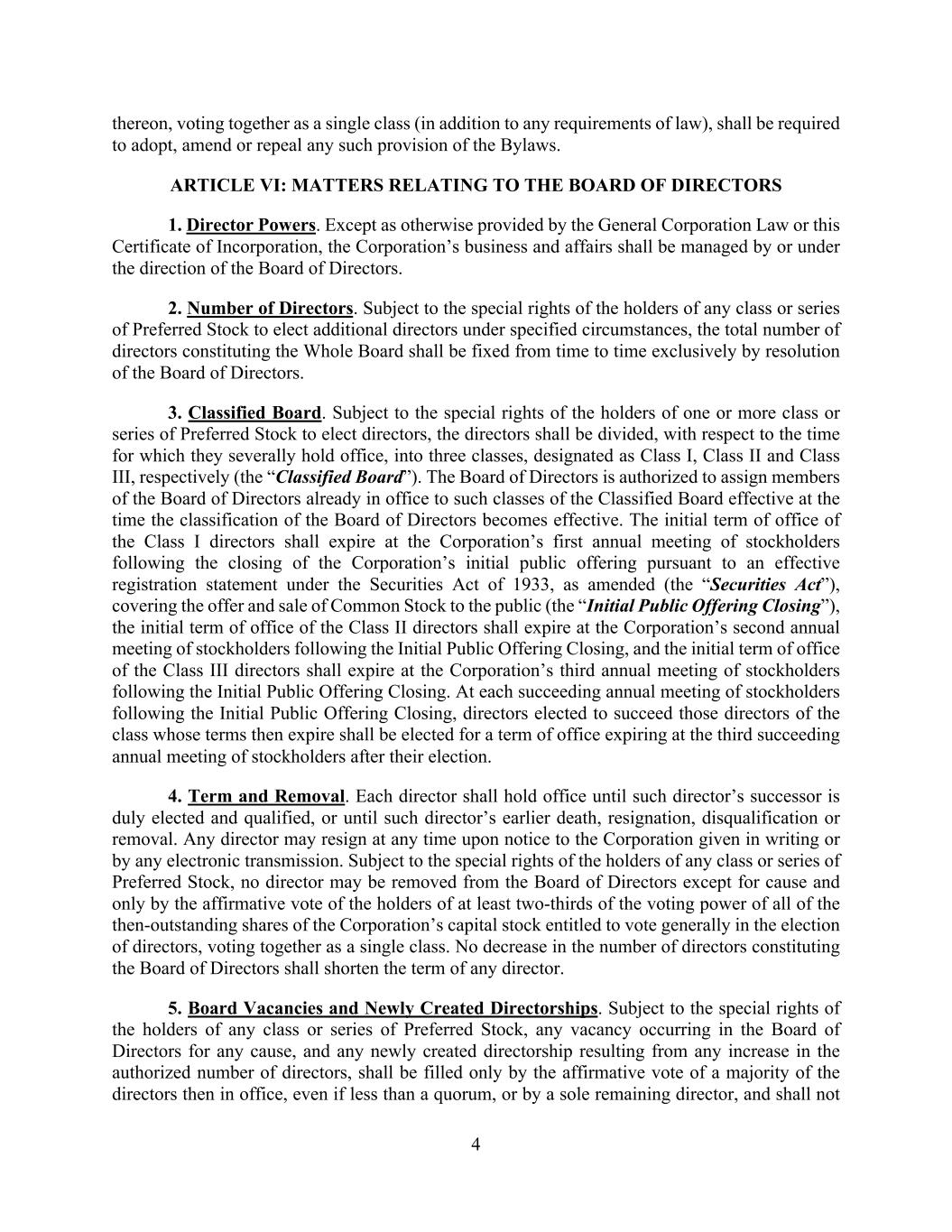 Moreover, Section 203 of the Delaware General Corporation Law (“DGCL”), may discourage, delay, or prevent a change in control of our company. Section 203 imposes certain restrictions on mergers, business combinations, and other transactions between us and holders of 15% or more of our common stock.