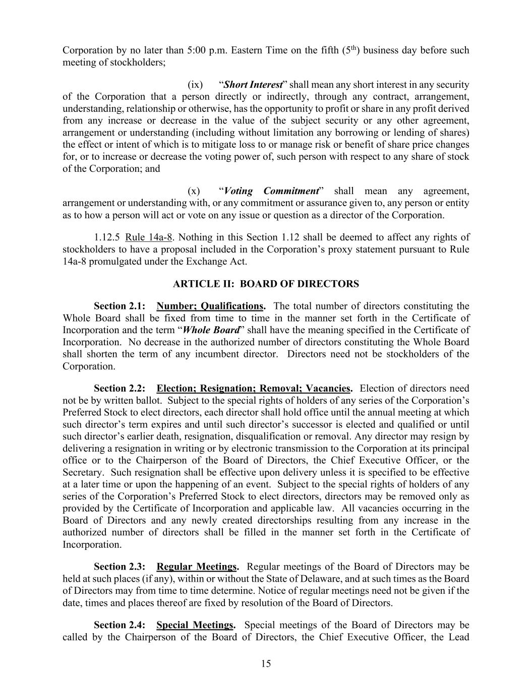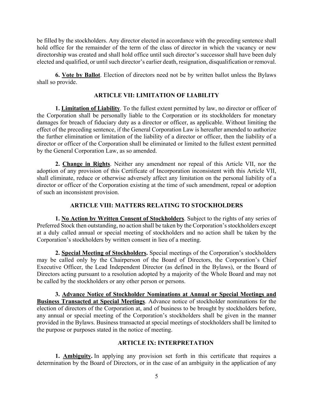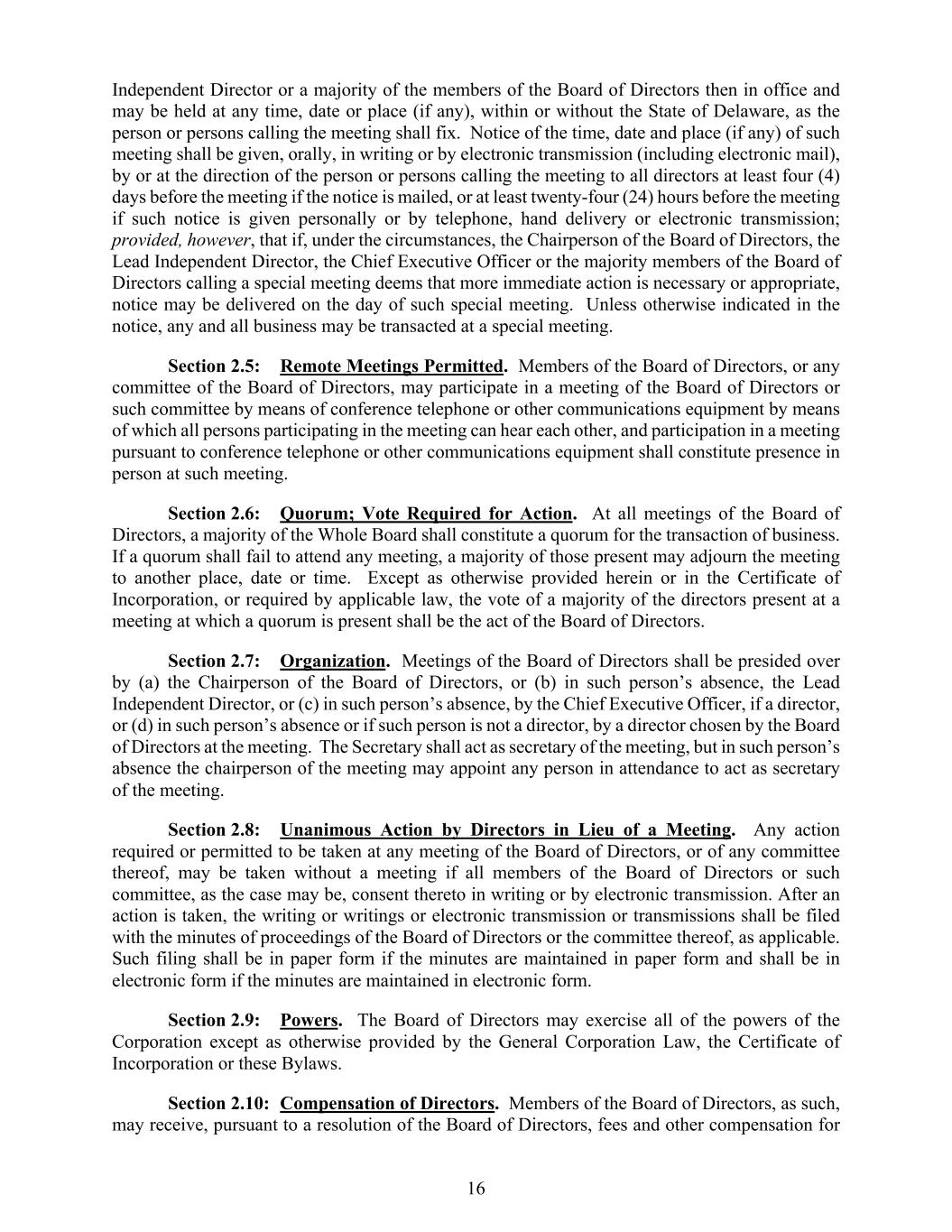 •provide that only the chairperson of our board of directors, our chief executive officer, our lead independent director, or a majority of our board of directors will be authorized to call a special meeting of stockholders;