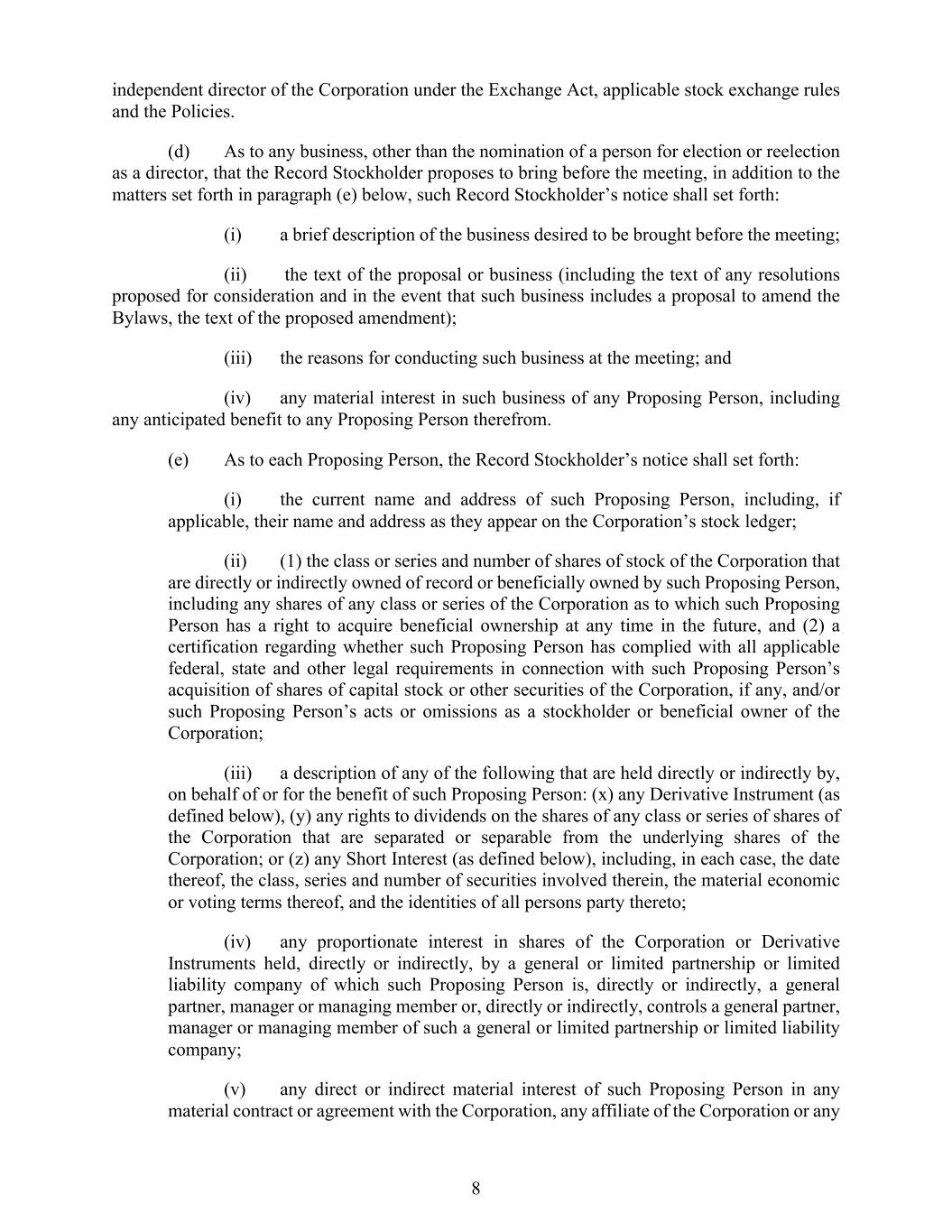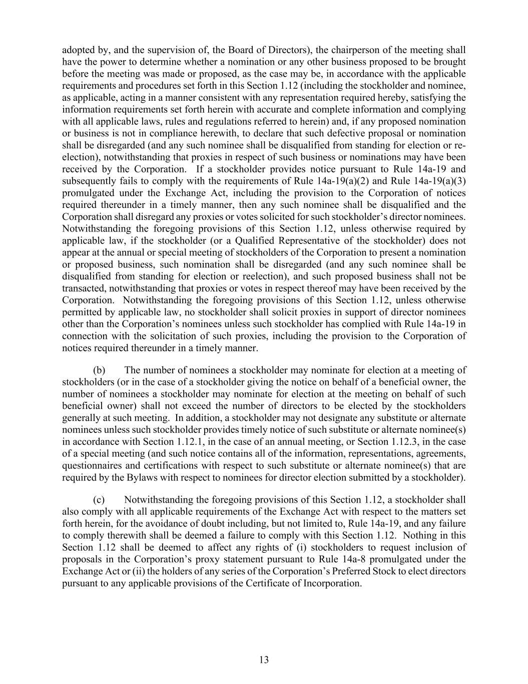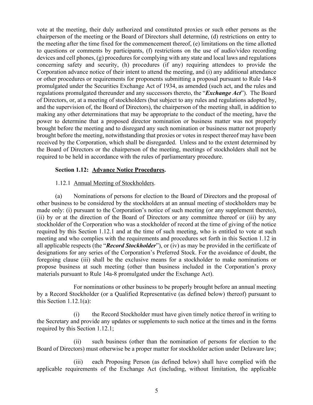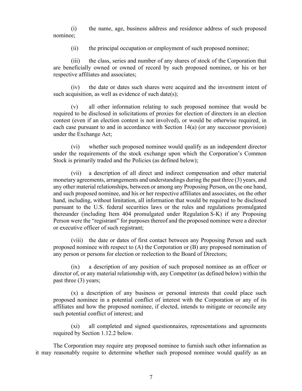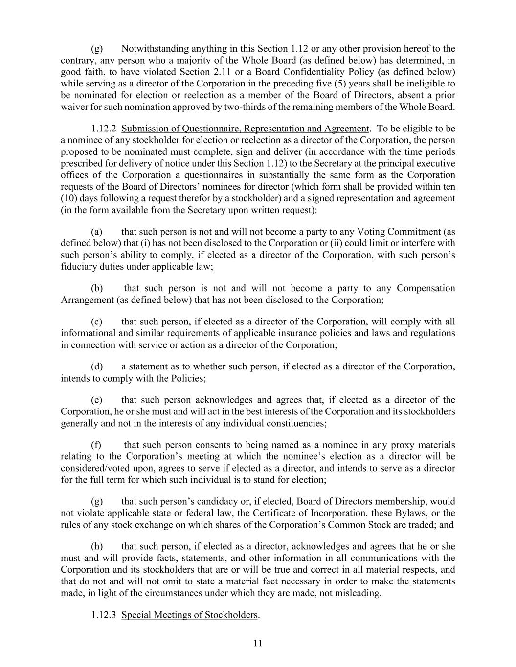 •establish advance notice requirements for nominations for election to our board of directors or for proposing matters that can be acted upon by stockholders at annual stockholder meetings.