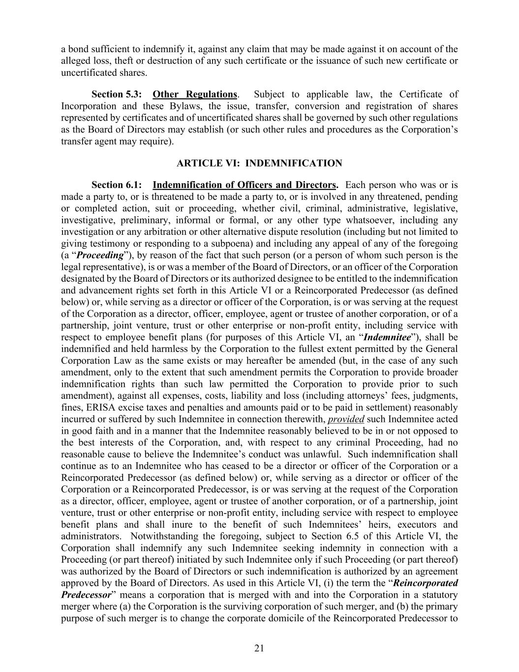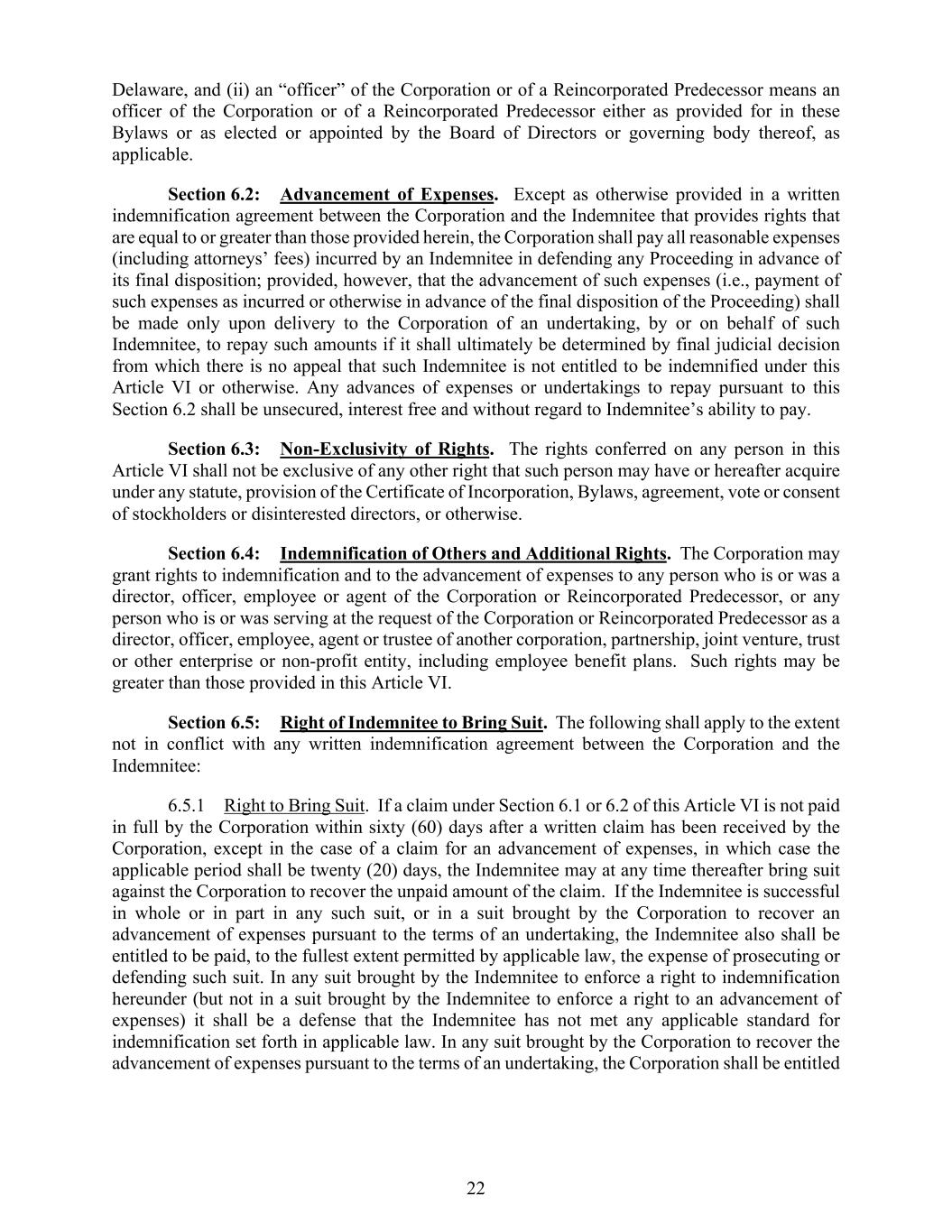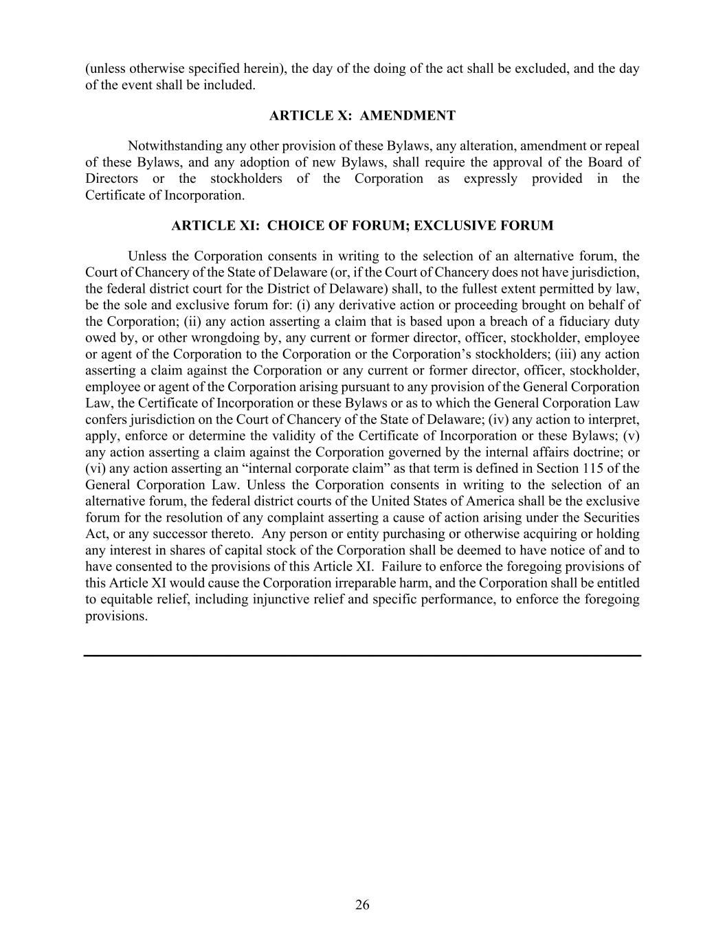 Our restated bylaws provide that the Court of Chancery of the State of Delaware, to the fullest extent permitted by law, will be the exclusive forum for any derivative action or proceeding brought on our behalf, any action asserting a breach of fiduciary duty, any action asserting a claim against us arising pursuant to the DGCL, our restated certificate of incorporation, or our restated bylaws, any action to interpret, apply, enforce, or determine the validity of our restated certificate of incorporation or our restated bylaws, or any action asserting a claim against us that is governed by the internal affairs doctrine or asserting an “internal corporate claim” as defined in the DGCL.